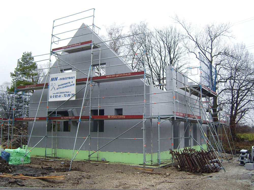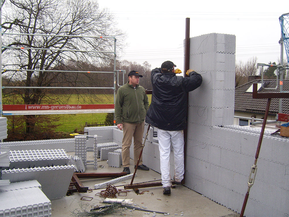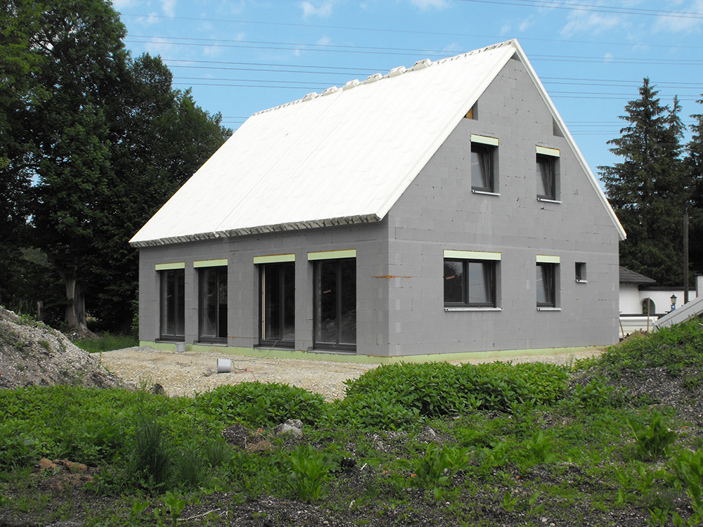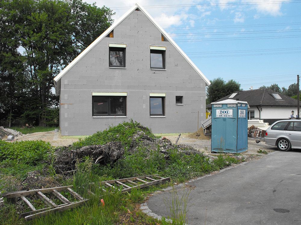 Das Doppelhaus in Neopor-Schalstein-Bauweise auf wärmegedämmter Bodenplatte wurde durch den Bauherren in Eigenleistung errichtet. SFBaubetreuung übernahm hier die fachspezifische Betreuung und Anleitung des Bauherren.