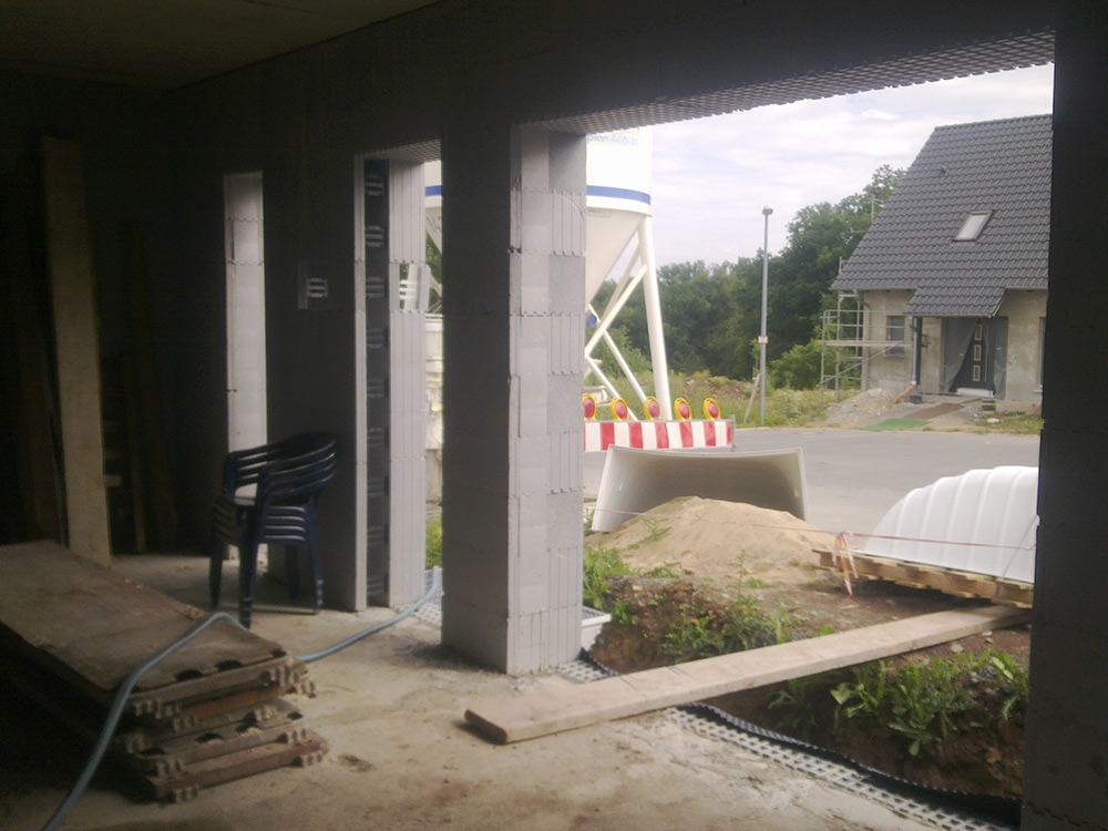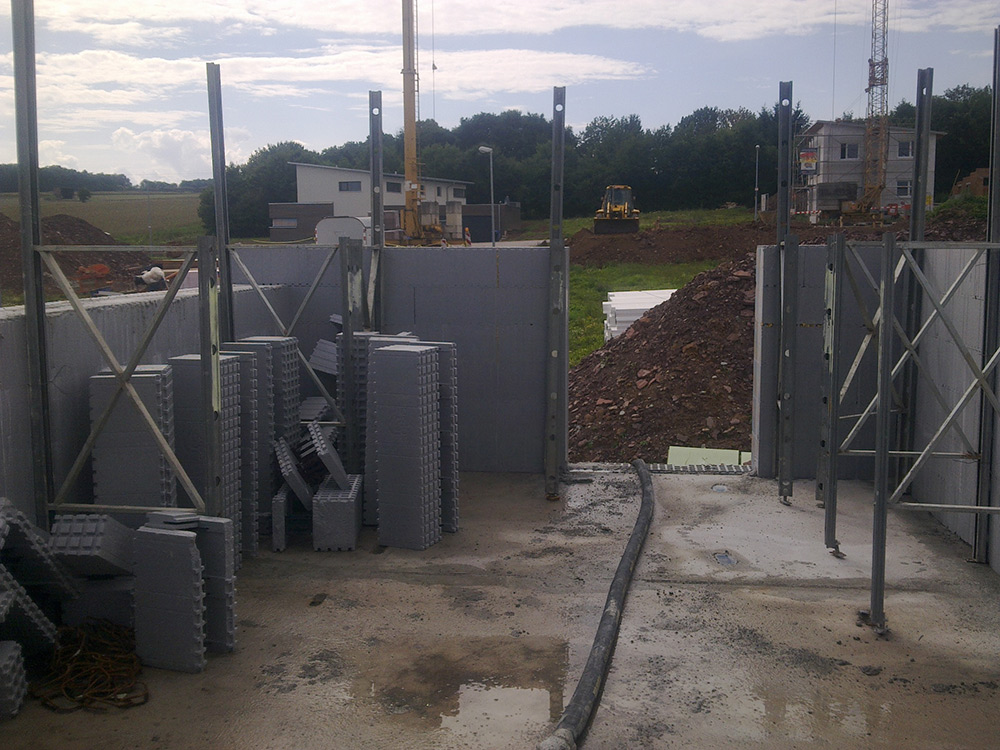 Das unterkellerte Einfamilienhaus in Neopor-Schalstein-Bauweise wurde durch die Bauherren in Eigenleistung errichtet.SFBaubetreuung übernahm hier die fachspezifische Betreuung und Anleitung der Bauherren.